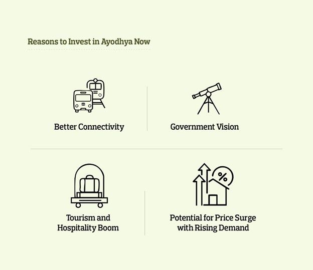 As the hospitality industry grows, land nearby becomes more valuable, which makes more people want to buy plots in Ayodhya.