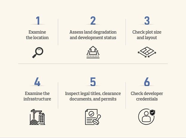 If the answer to your question, “where to invest money”, is plot development, then there are some checks and research you should conduct before signing the deal.